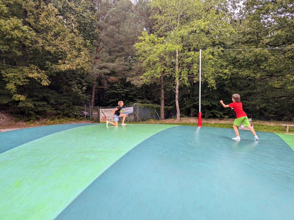 Pictured below: Erika and Andrew at the huge trampoline on Adventure Playground: