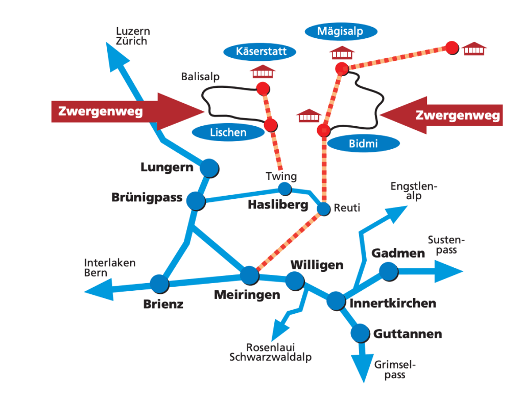You can reach them from aerial cable cars on the Hasliberg and Meringen: